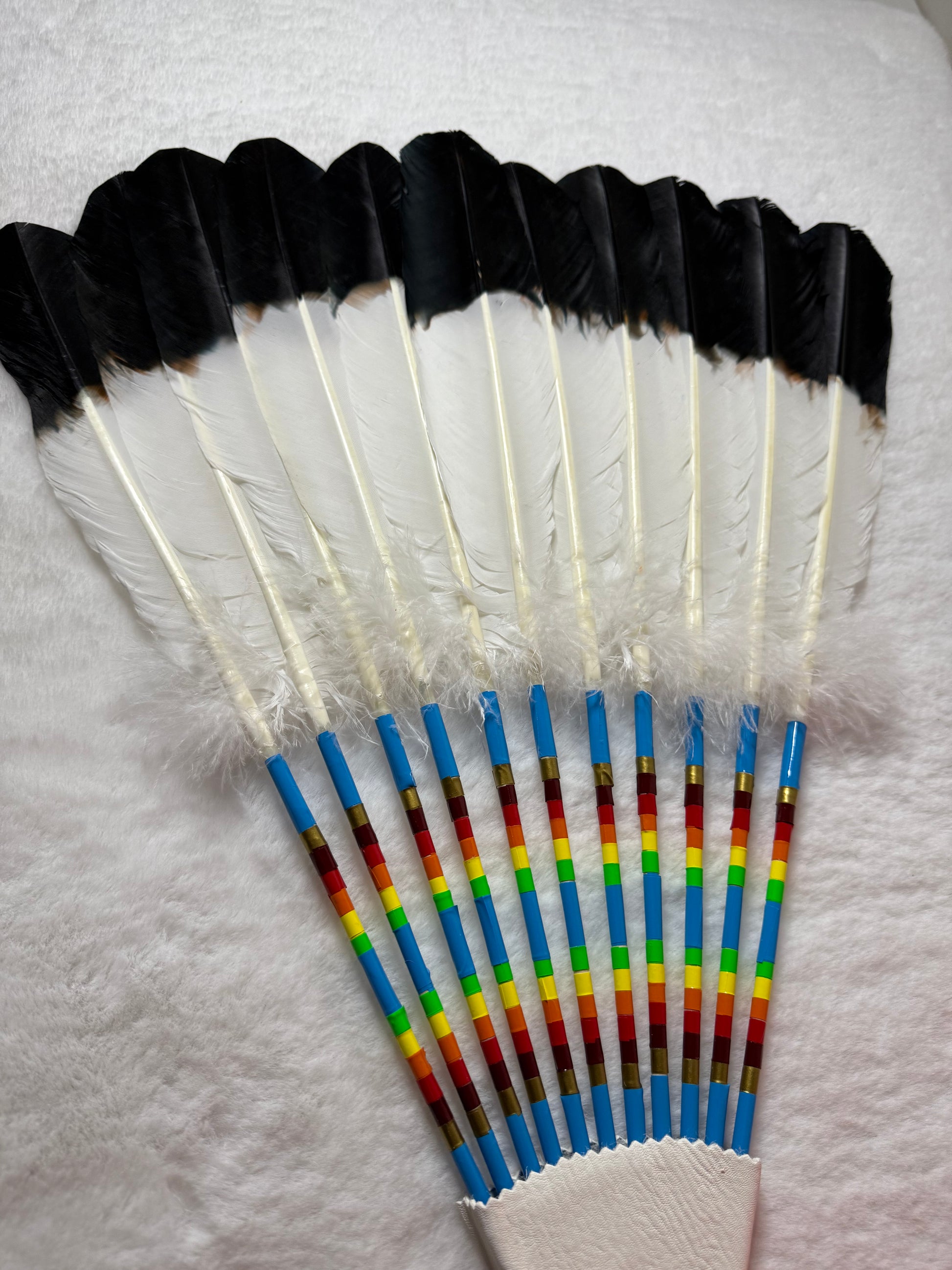 Authentic, one-of-a-kind feather fans handmade by Eric Mentuck. Each fan carries its own unique design and spirit, made with deep respect for cultural tradition.